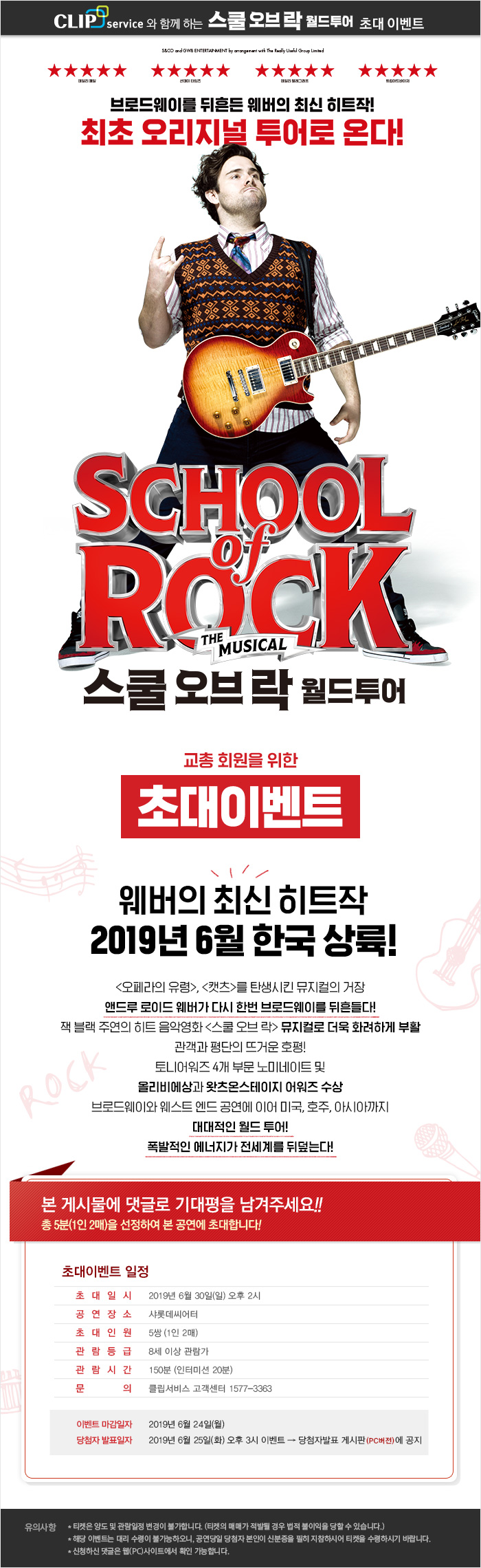 뮤지컬 스쿨 오브 락 월드투어 초대이벤트!