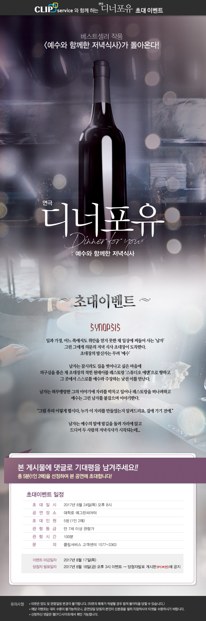 연극<디너 포 유 (부제:낯선 이와 함께한 저녁식사)>초대 이벤트!