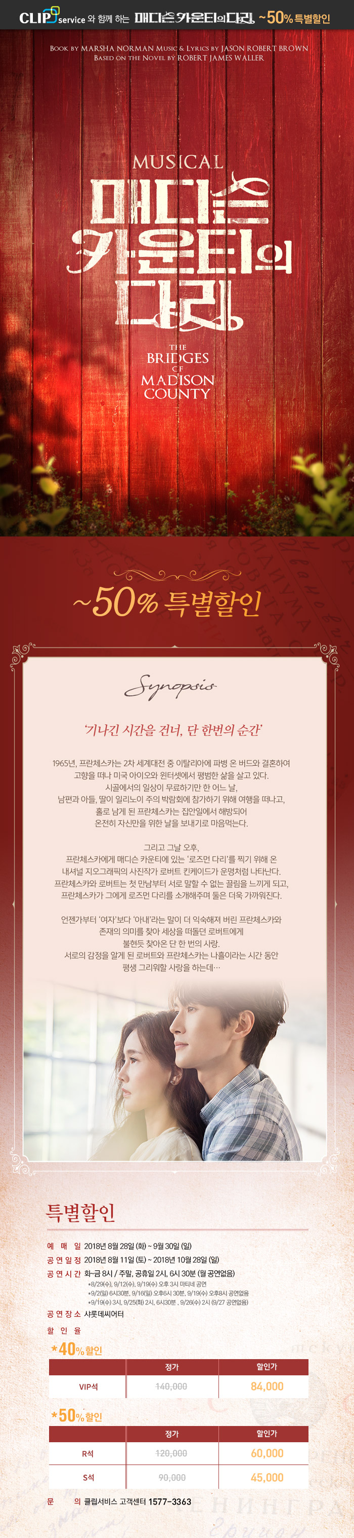 뮤지컬<매디슨 카운티의 다리> 특별할인