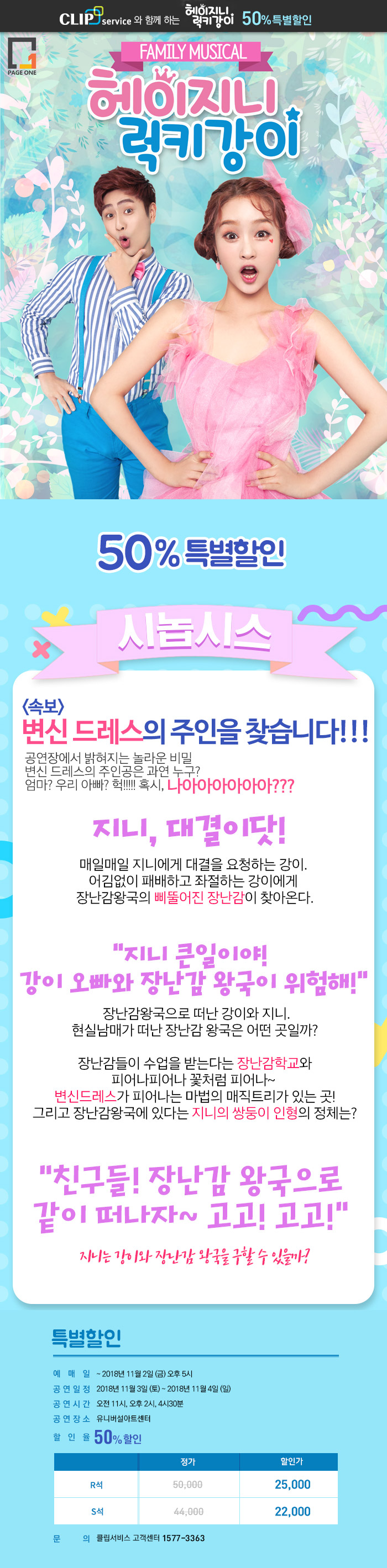 패밀리뮤지컬 “헤이지니&럭키강이” 서울앵콜공연 특별할인