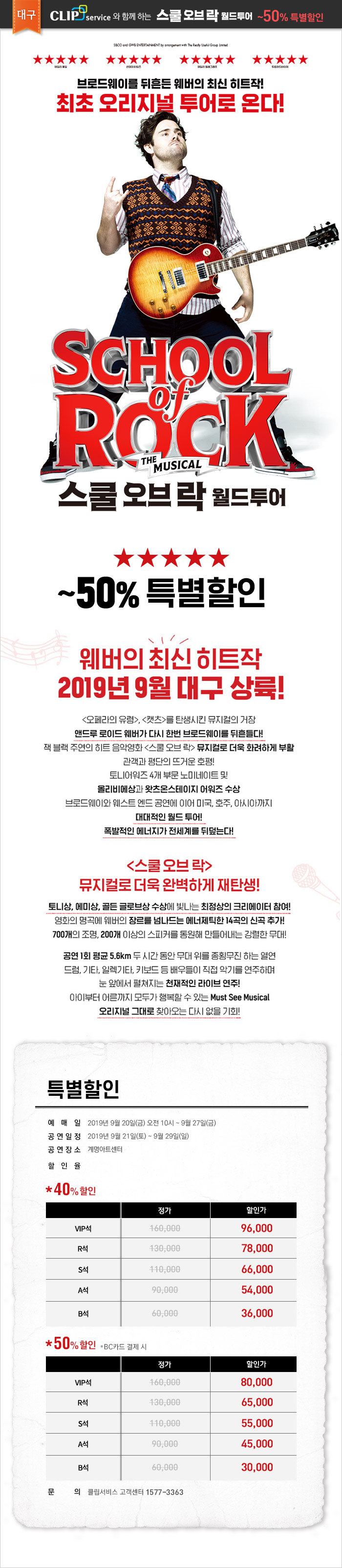 뮤지컬 스쿨 오브 락 월드투어-대구 (Musical School Of Rock)특별할인