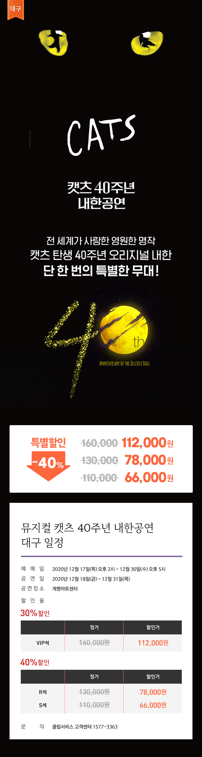 뮤지컬 <캣츠> 40주년 내한공연 - 대구 (Musical CATS) 연말 특가