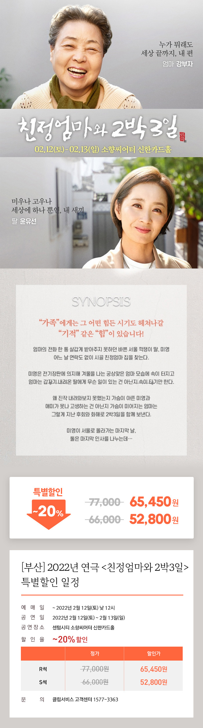 [부산] 2022년 연극 <친정엄마와 2박3일>특별할인