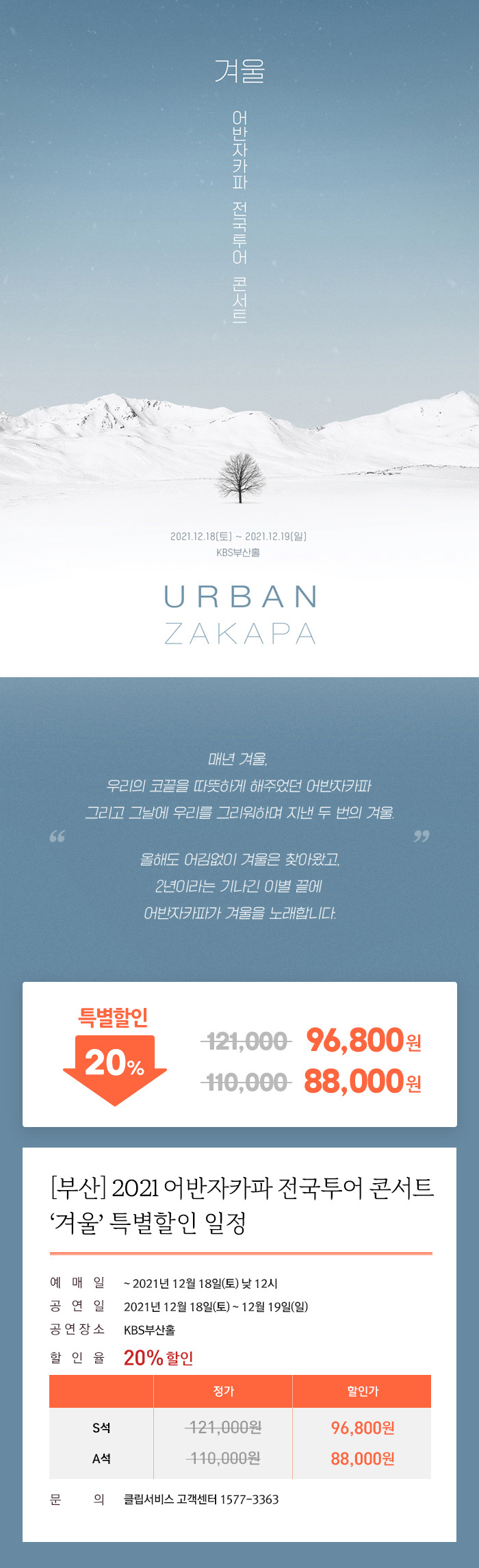 [부산] 2021 어반자카파 전국투어 콘서트 ‘겨울’ 특별할인