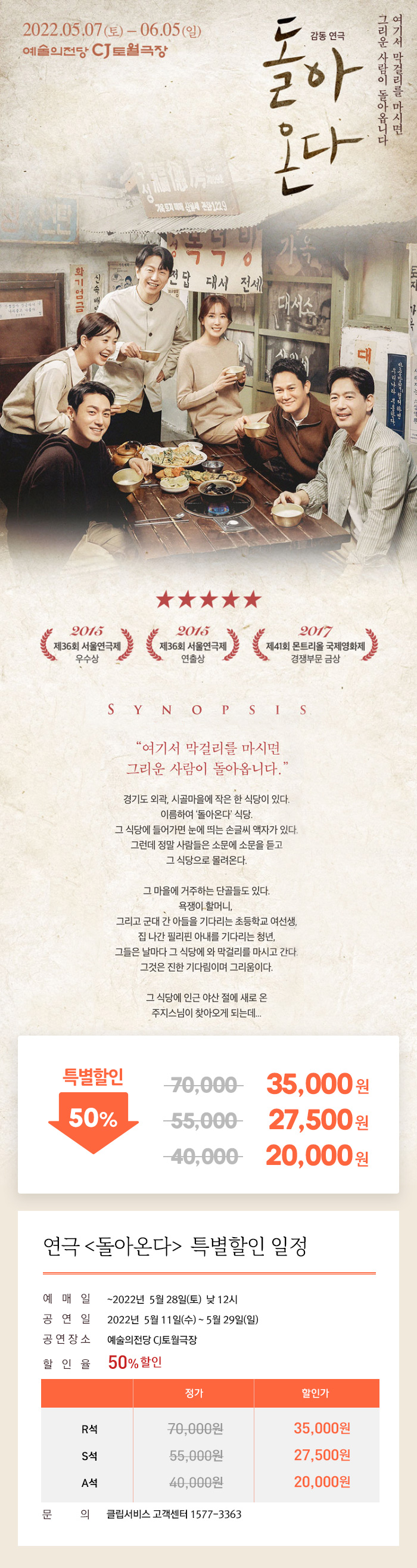 연극 <돌아온다> 특별할인