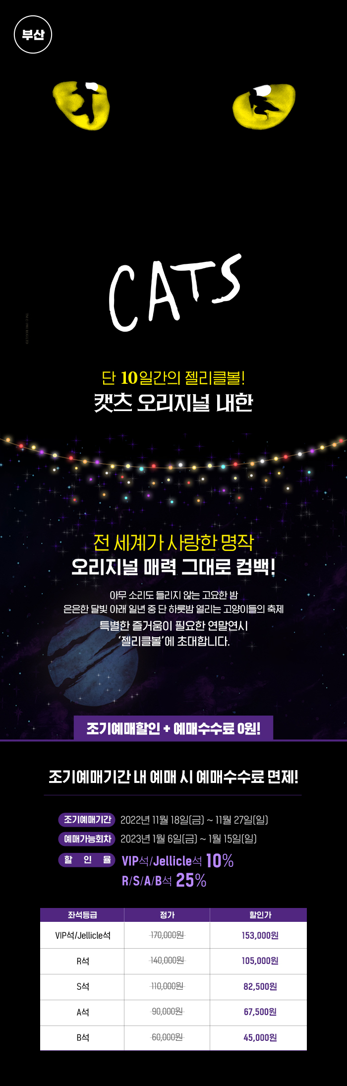 [부산] 뮤지컬 <캣츠> 조기예매할인 + 예매수수료 면제