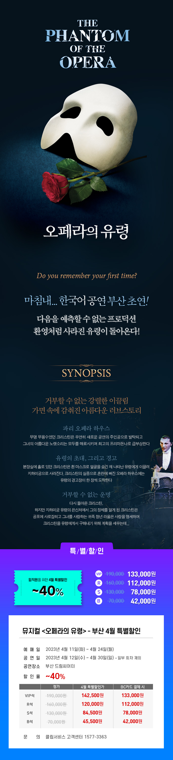 뮤지컬 <오페라의 유령> -부산 4월 특별할인