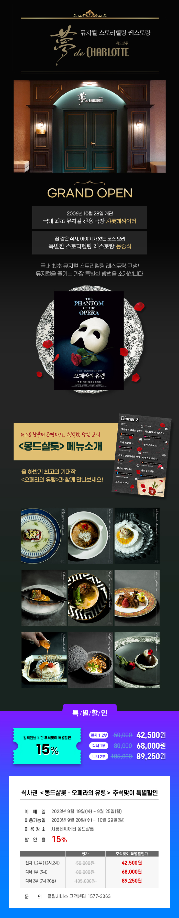 [식사권] 몽드샬롯 - 오페라의 유령 추석맞이 특별할인