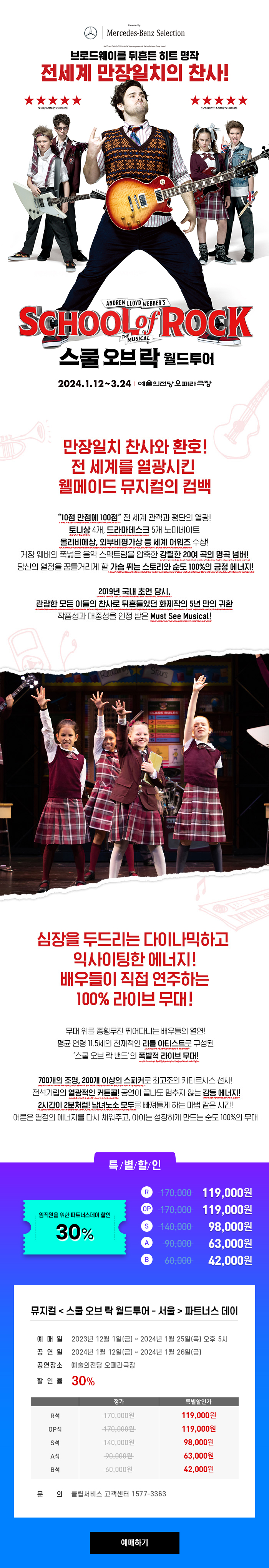 스쿨 오브 락 월드투어-서울 (Musical School Of Rock) - 파트너스 데이 할인