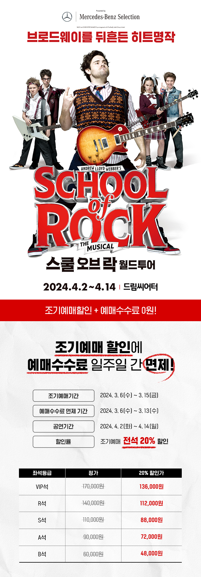 뮤지컬 스쿨 오브 락 월드투어-부산 조기예매 예매수수료 면제 프로모션