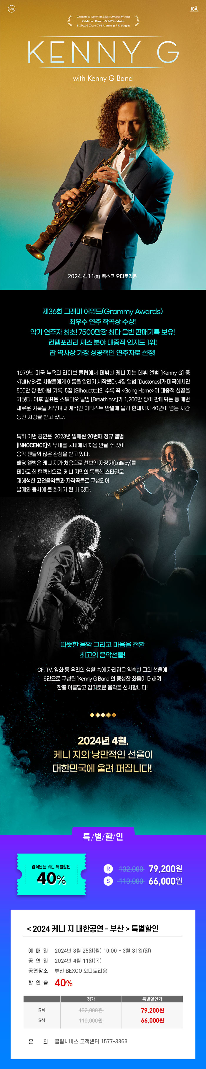 [부산] 2024 케니 지(Kenny G) 월드투어 내한공연 특별할인