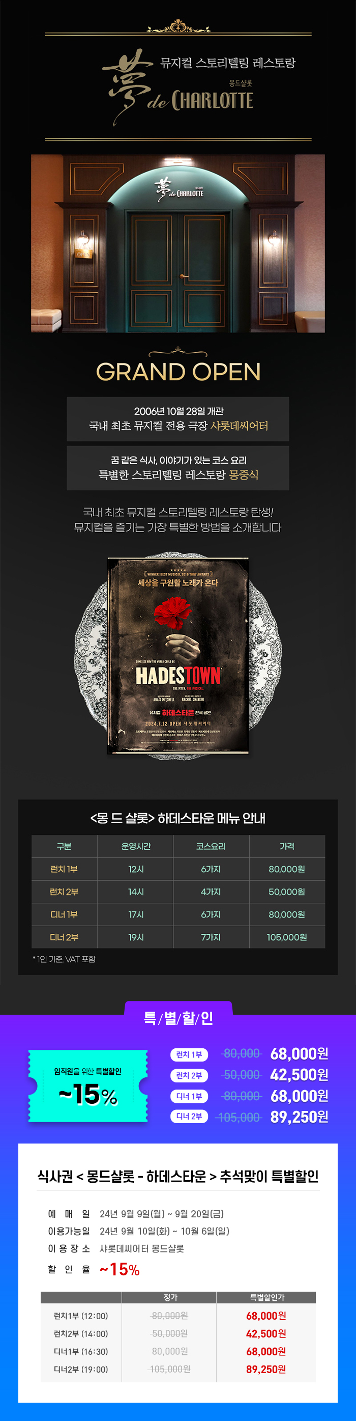 [식사권] 몽드샬롯 - 하데스타운 추석맞이 특별할인