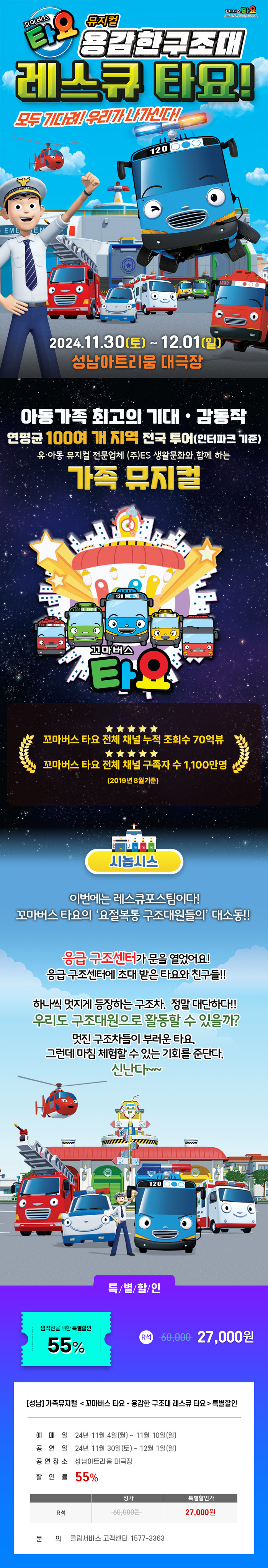 [성남] 가족뮤지컬 <꼬마버스 타요 - 용감한 구조대 레스큐 타요>특별할인