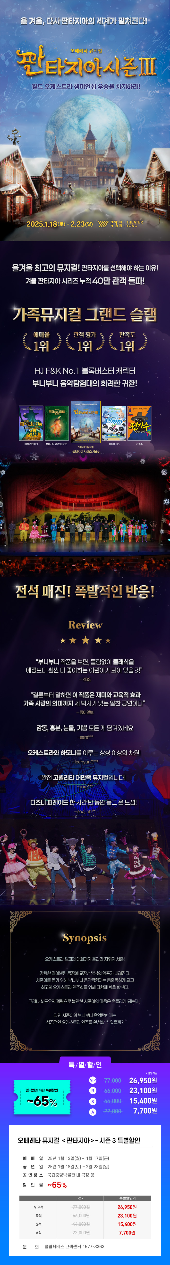 오페레타 뮤지컬<판타지아> 시즌 3 - 월드 오케스트라 챔피언십 우승을 차지하라!특별할인