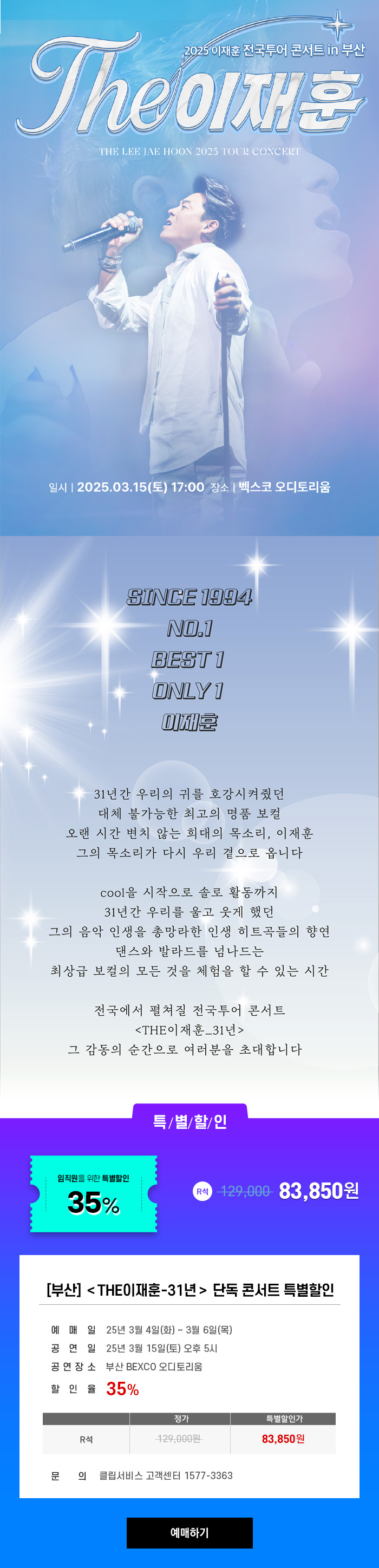 [부산] <THE이재훈_31년> 단독 콘서트 부산공연 특별할인