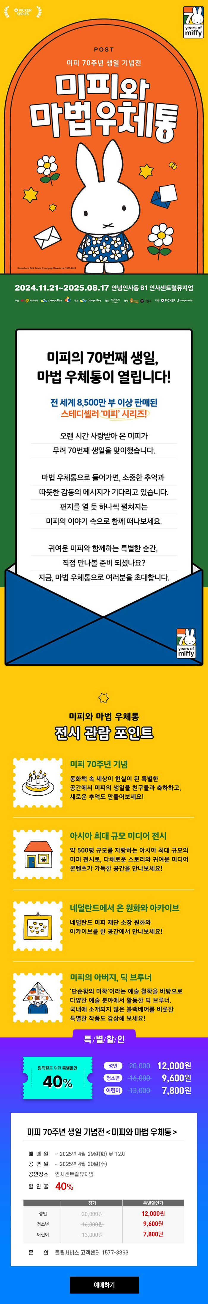 미피 70주년 생일 기념전: 미피와 마법 우체통 특별할인