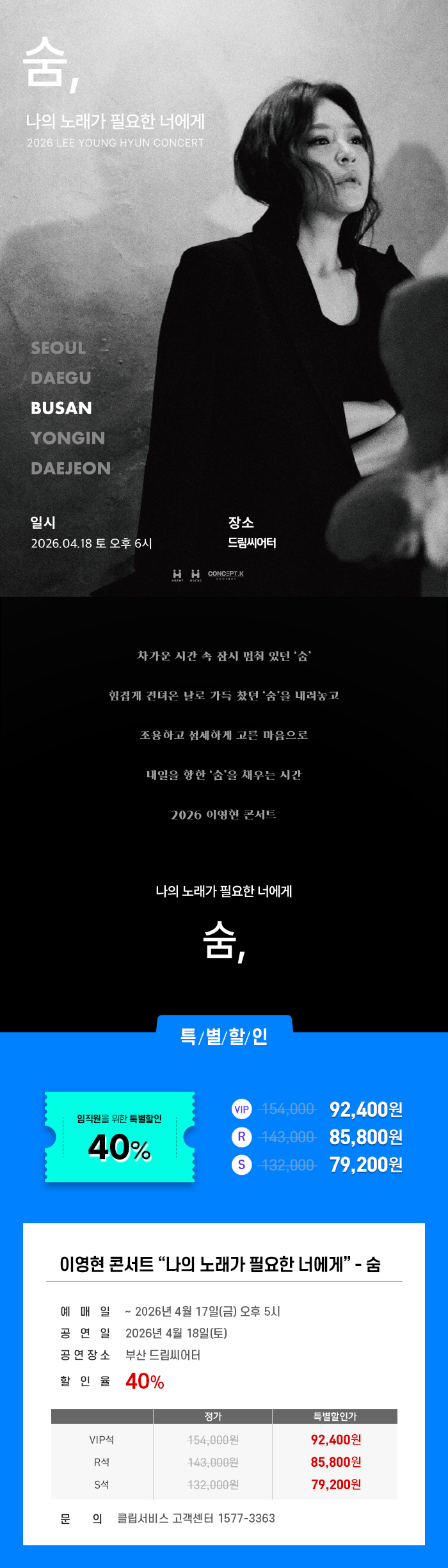 2026 이영현 콘서트 “나의 노래가 필요한 너에게” - 숨 in 부산 특별할인