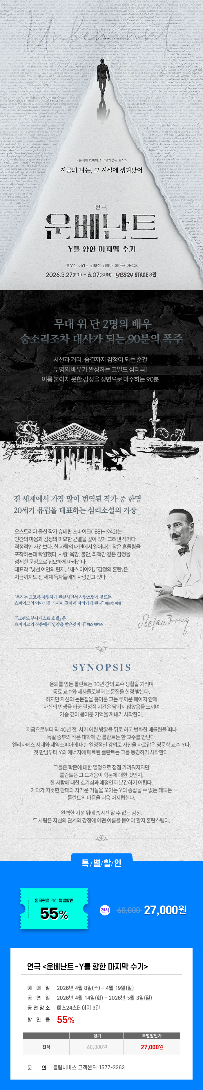 연극 <운베난트 - Y를 향한 마지막 수기> 특별할인